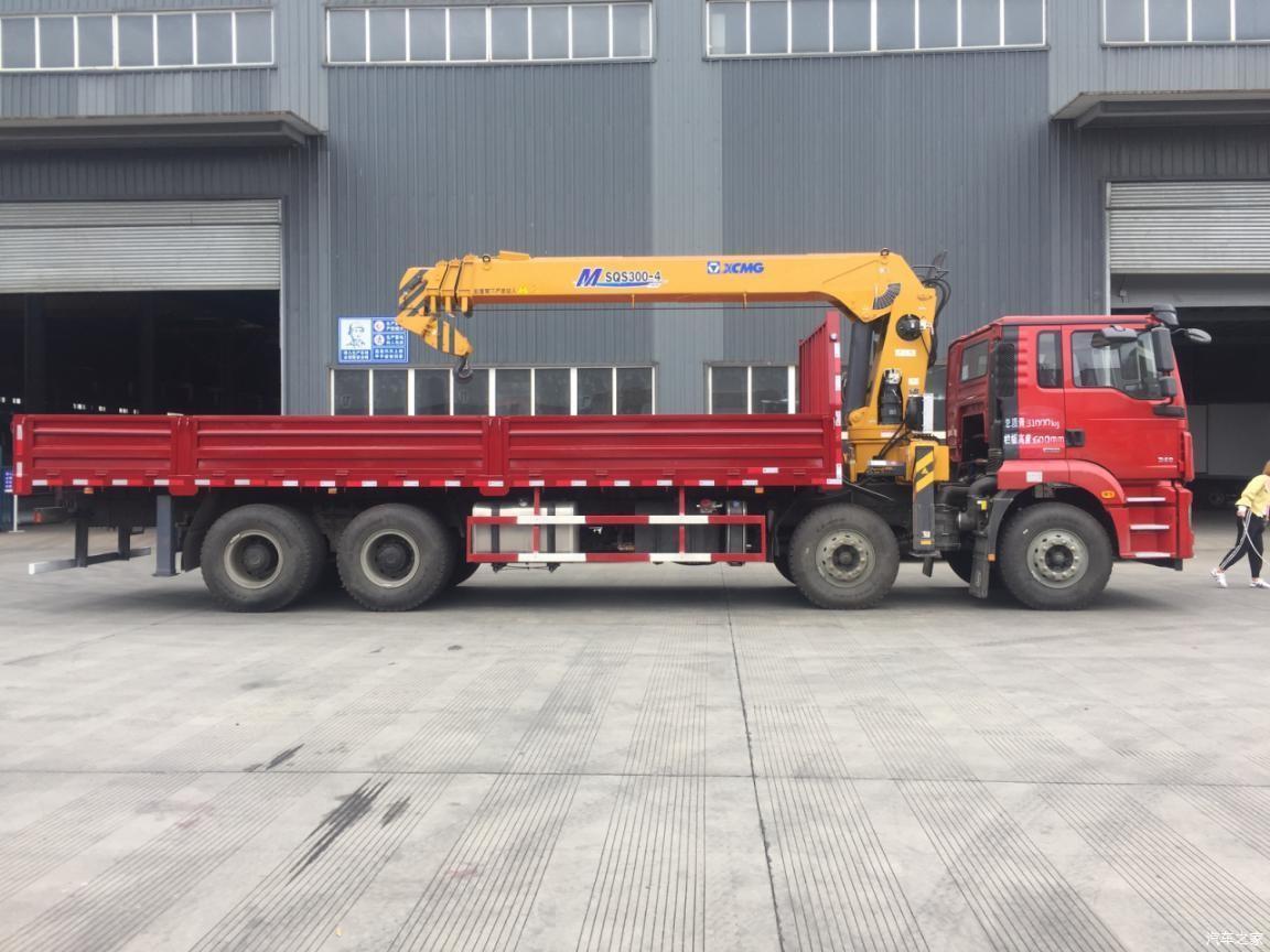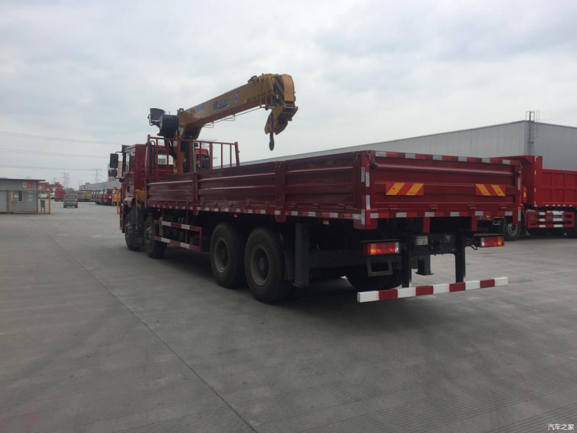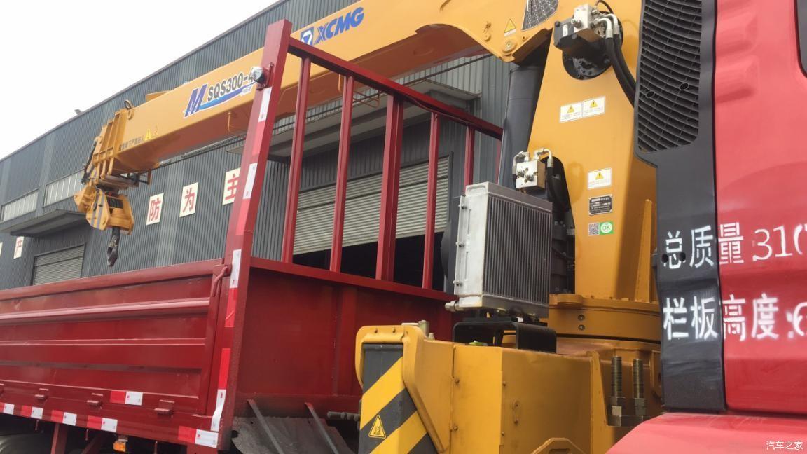 吊臂采用了徐工的SQS300-4直臂隨車吊,吊裝重量為12噸,具備四節伸展吊臂,主臂可以360°旋轉。該吊臂的工作半徑為12.5米,而吊裝重量也是根據工作半徑來定的,半徑越大吊裝重量越小,工作半徑為12.5米時的吊裝重量1.8噸;而工作半徑為2.5米的時候可以吊裝12噸的貨物。