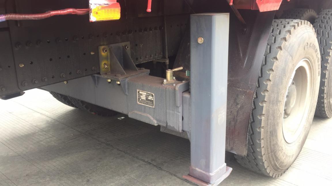 前面我們也說到了,車輛運輸的貨物偶爾會超載,所以說還是要保證車輛的運載能力。前橋采用了一對7.5噸級別的車橋,后橋則是一對MAN技術的16噸輪邊減速橋,全車使用了多片拋物線鋼板彈簧懸掛。輪邊減速橋使得車輛的離地間隙提高,通過性更好。且較大的主減速比,也能夠輸出更大的扭矩,適應復雜工況的運輸。該車配備的是12.00R20的鋼絲胎,也是重載運輸的配置。