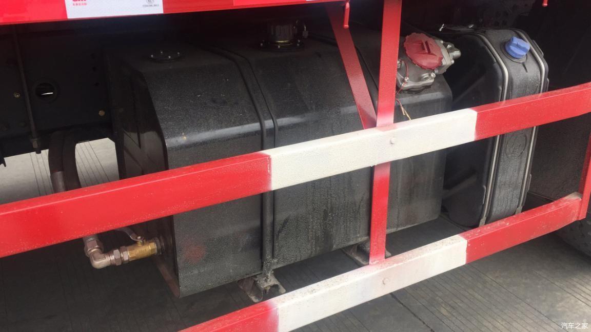 該車配置了一個400L的鋁制油箱。因為該車的運輸情況大多都是倒短或者短途運輸,所以對續航里程沒有那么大的要求,即使是提供上裝工作,這個容積基本也夠。
